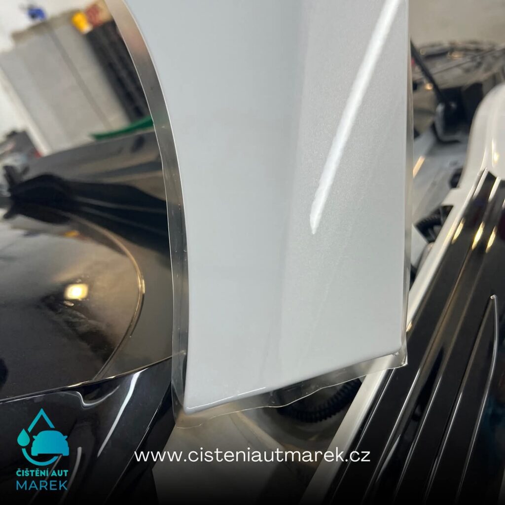 Folie je téměř neviditelná, ukončuje se před hranou, takže tam je jediné místo, kde by se dala zahlédnout. Ale kdo neví že je fólie na autě, tak si ji nevšimne.