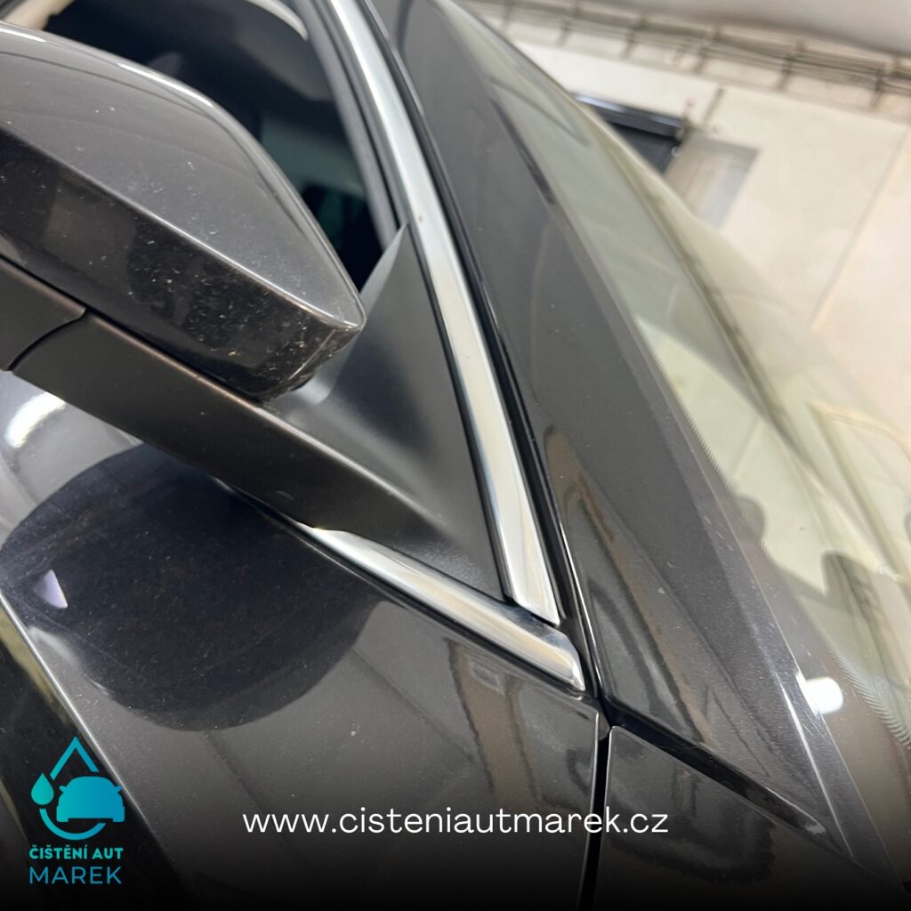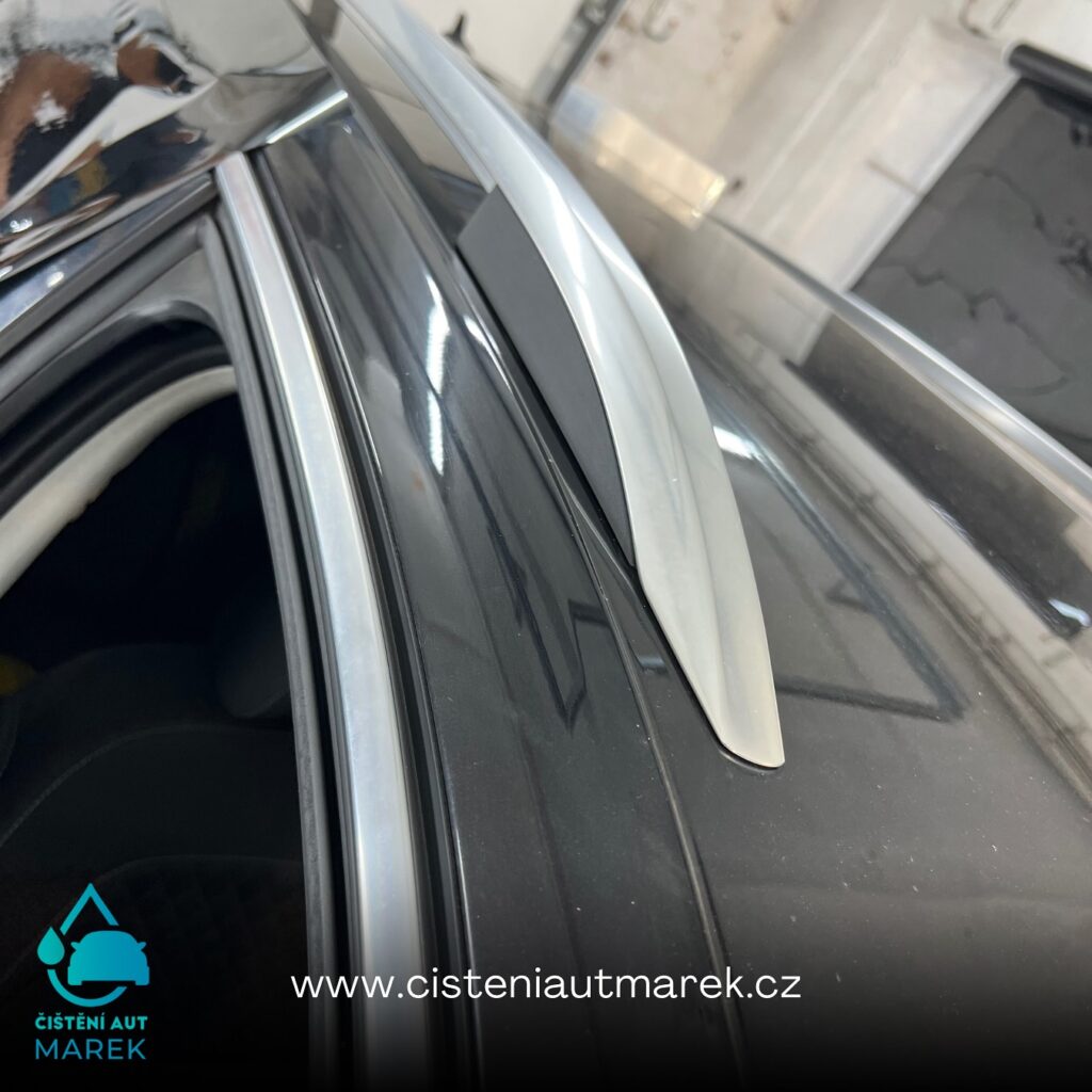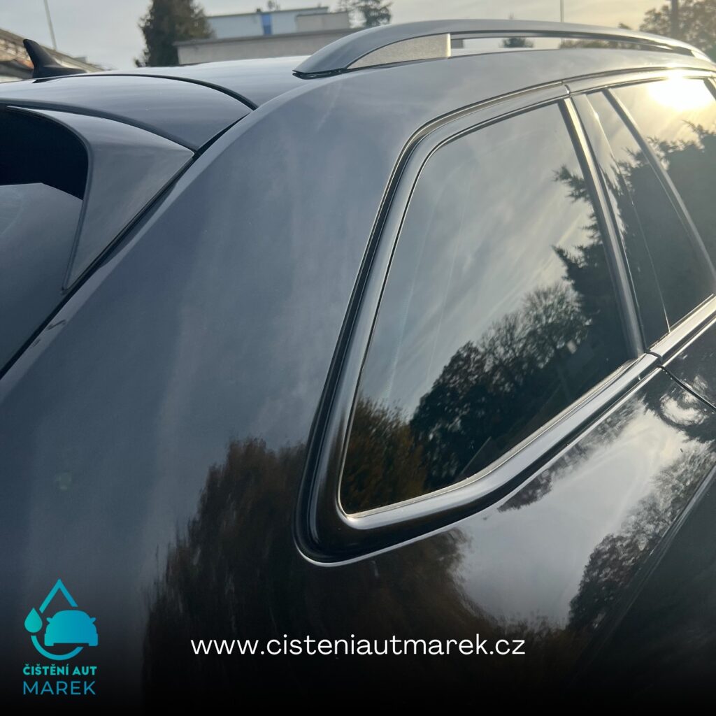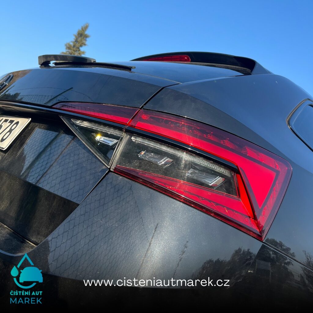 Na vozidle jsme nejprve důkladně vyčistili a odmastili veškeré chromové části, na které jsme následně aplikovali fólii pro dosažení sportovnějšího vzhledu. Zatmavením prošla i samotná světla, která jsou díky fólii chráněna před poškrábáním a navíc působí elegantněji. Pro dotažení tmavého designu do maximálního detailu jsme provedli tónování zadních oken a oken zavazadlového prostoru (samozřejmě s atestem), čímž jsme docílili i většího soukromí a bezpečnosti.